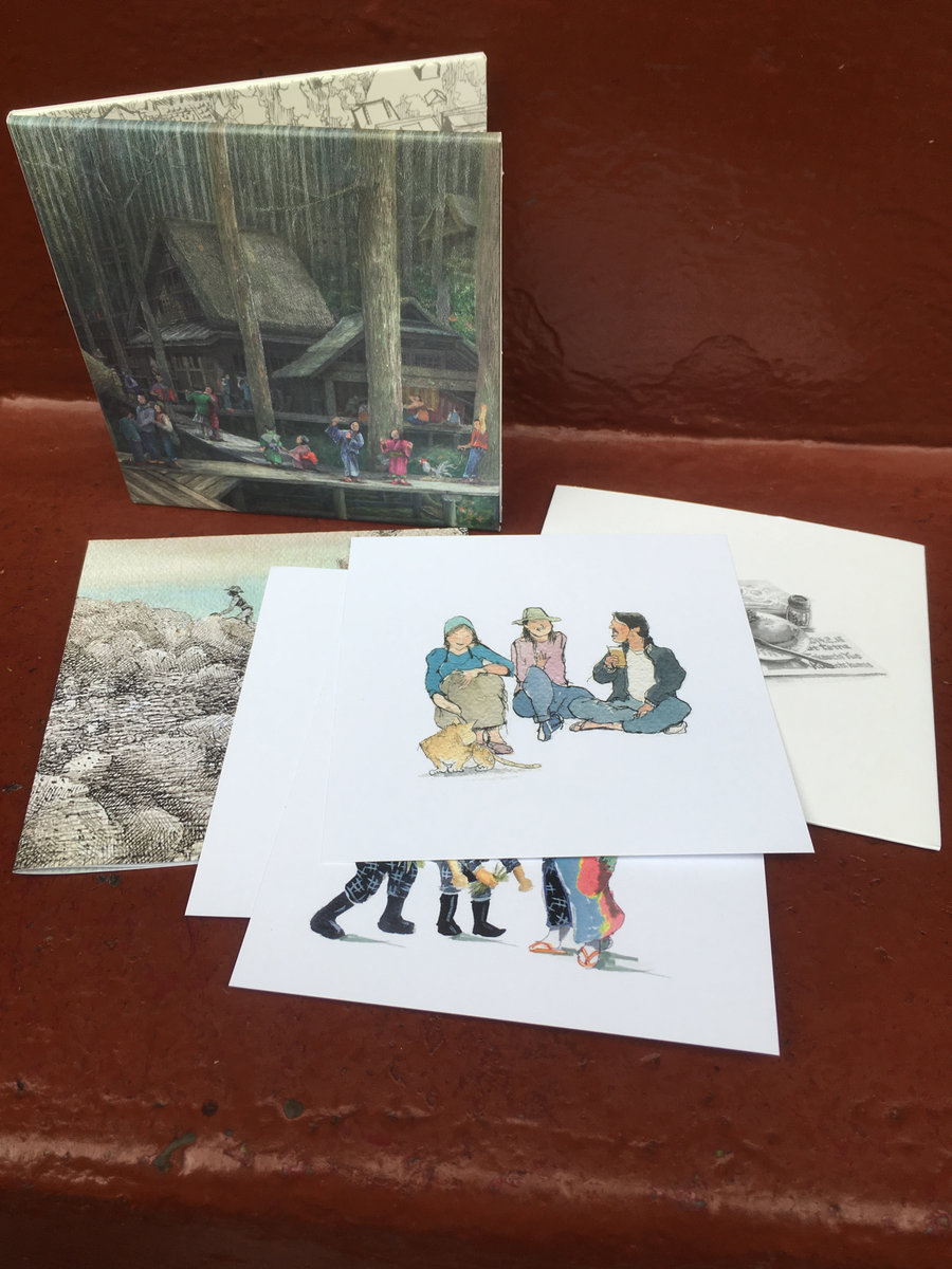 Kumio Kurachi has performed actively in Japan since the 80’s, and still plays shows in Fukuoka regularly. Past collaborators include Taku Unami and Tatsuhisa Yamamoto. He has played with Tenniscoats, Kazuhisa Uchihashi, Katsura Yamauchi, Tori Kudo, Jim O’Rourke and Eiko Ishibashi. If you like odd birds, outsiders, weird folk, this album is really for you. A very nice discovery, comes in Deluxe Gatefold CD with fold out poster & 3 double sided art cards featuring Kurachi’s illustrations.